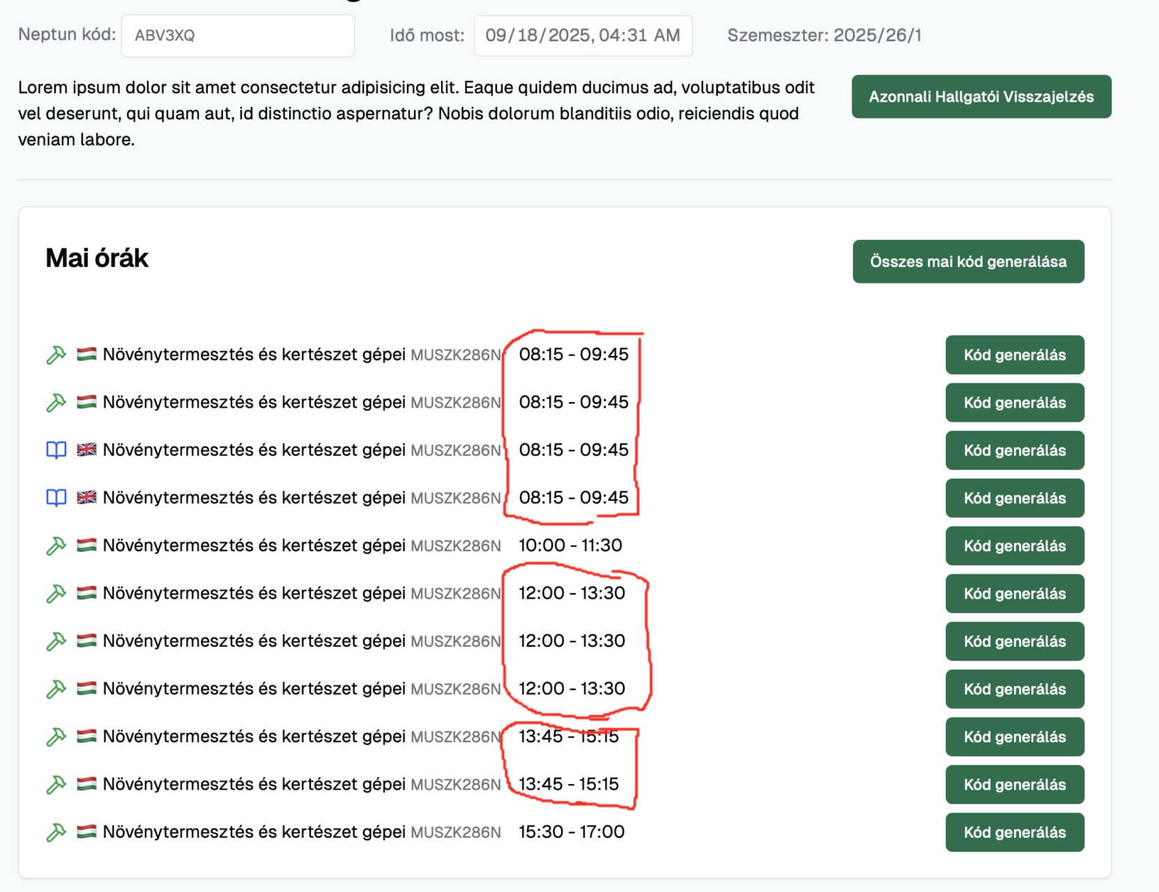 Sajátos tantárgyak